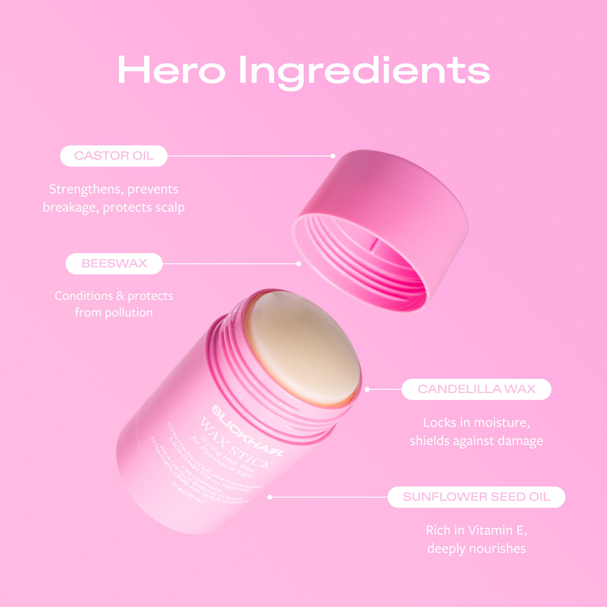 Say goodbye to flyaways and unruly edges with our Wax Stick, designed to keep your look effortlessly sleek all day - no stiffness, no flakes. Crafted with nutrient-rich Beeswax and Candelilla Wax, it deeply nourishes while providing serious hold. A little heavier for extra staying power, it locks your style in place without weighing your hair down. Perfect for ultimate control, long-lasting smoothness, and sleek hairstyles, this is your new styling must-have.